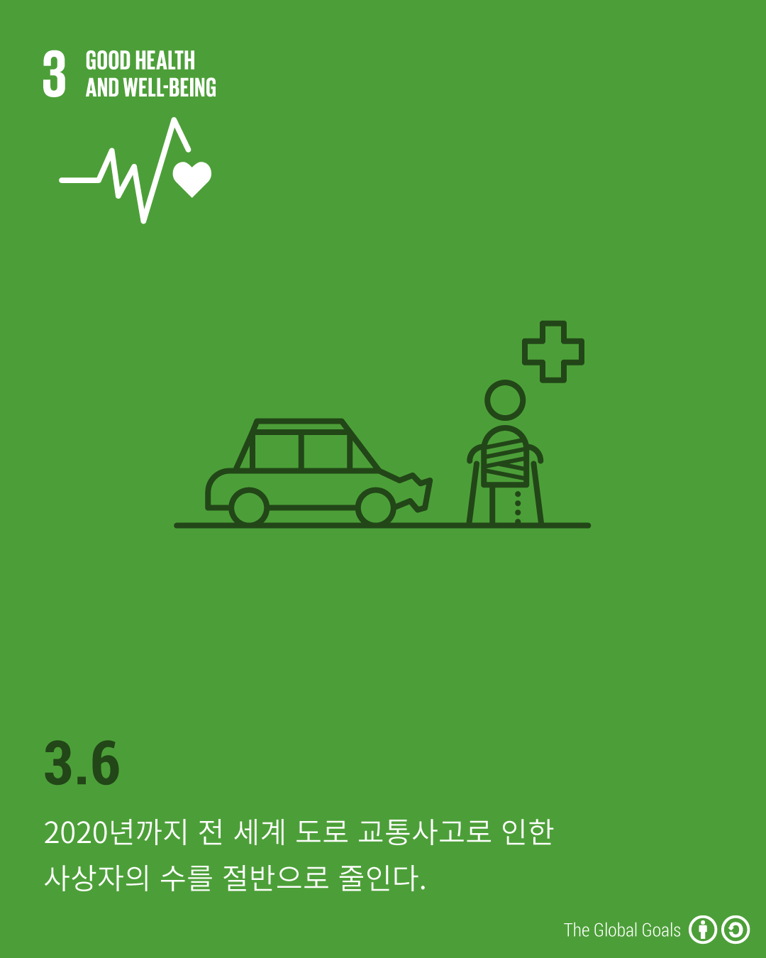 - 3.6 - 2020년까지 전 세계 도로 교통사고로 인한 사상자의 수를 절반으로 줄인다.