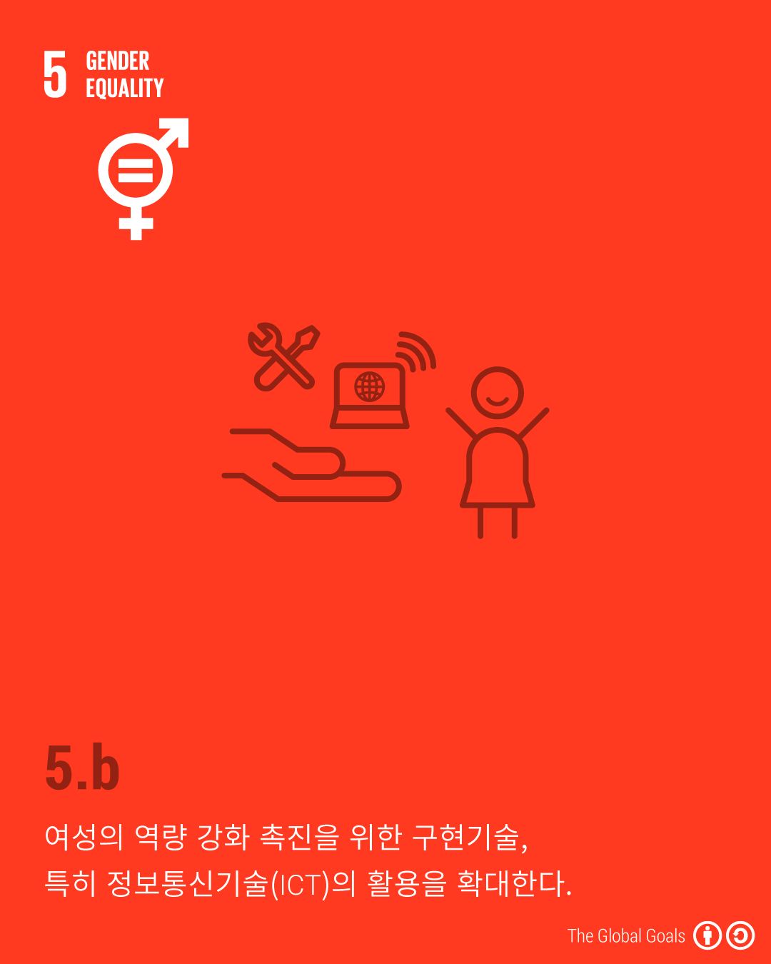 - 5.b - 여성의 역량 강화 촉진을 위한 구현기술, 특히 정보통신기술(ICT)의 활용을 확대한다.