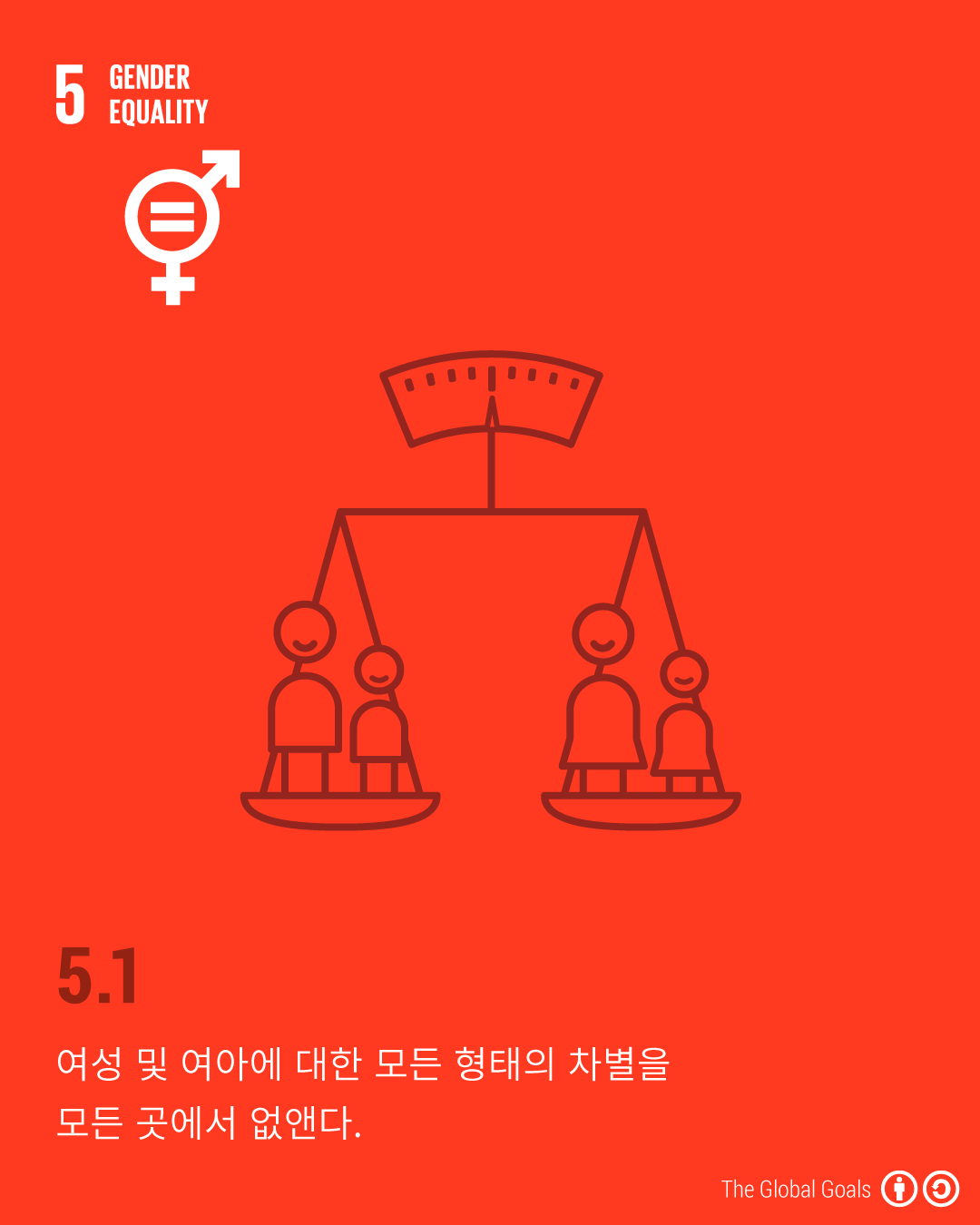 - 5.1 - 여성 및 여아에 대한 모든 형태의 차별을 모든 곳에서 없앤다.