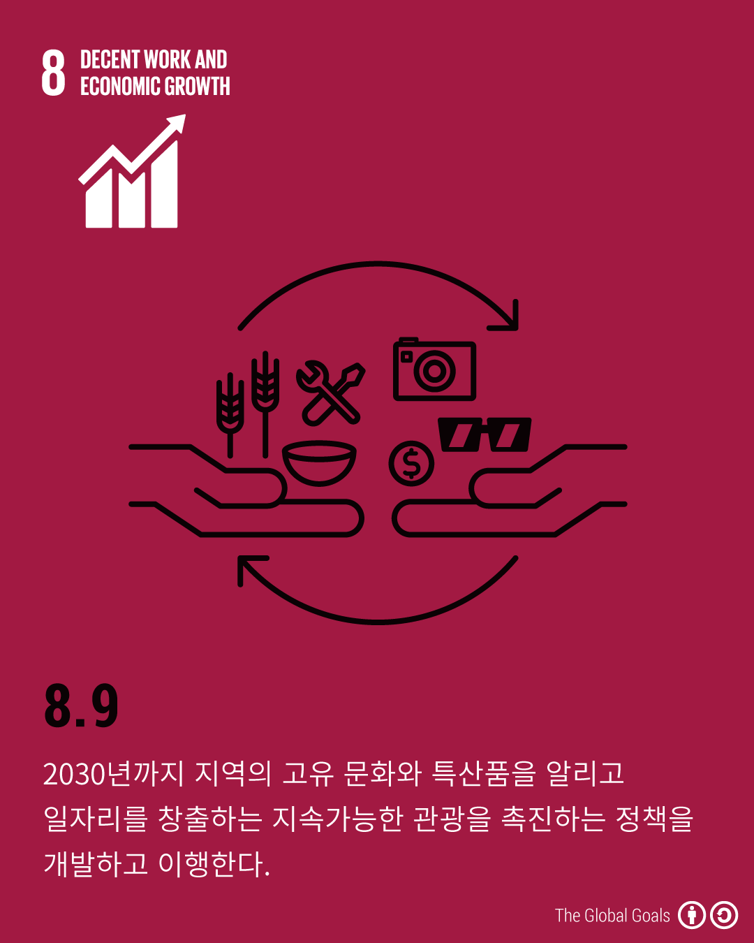 - 8.9 - 2030년까지 지역의 고유 문화와 특산품을 알리고 일자리를 창출하는 지속가능한 관광을 촉진하는 정책을 개발하고 이행한다.