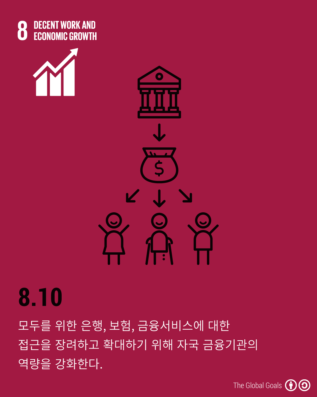 - 8.10 - 모두를 위한 은행, 보험, 금융서비스에 대한 접근을 장려하고 확대하기 위해 자국 금융기관의 역량을 강화한다.