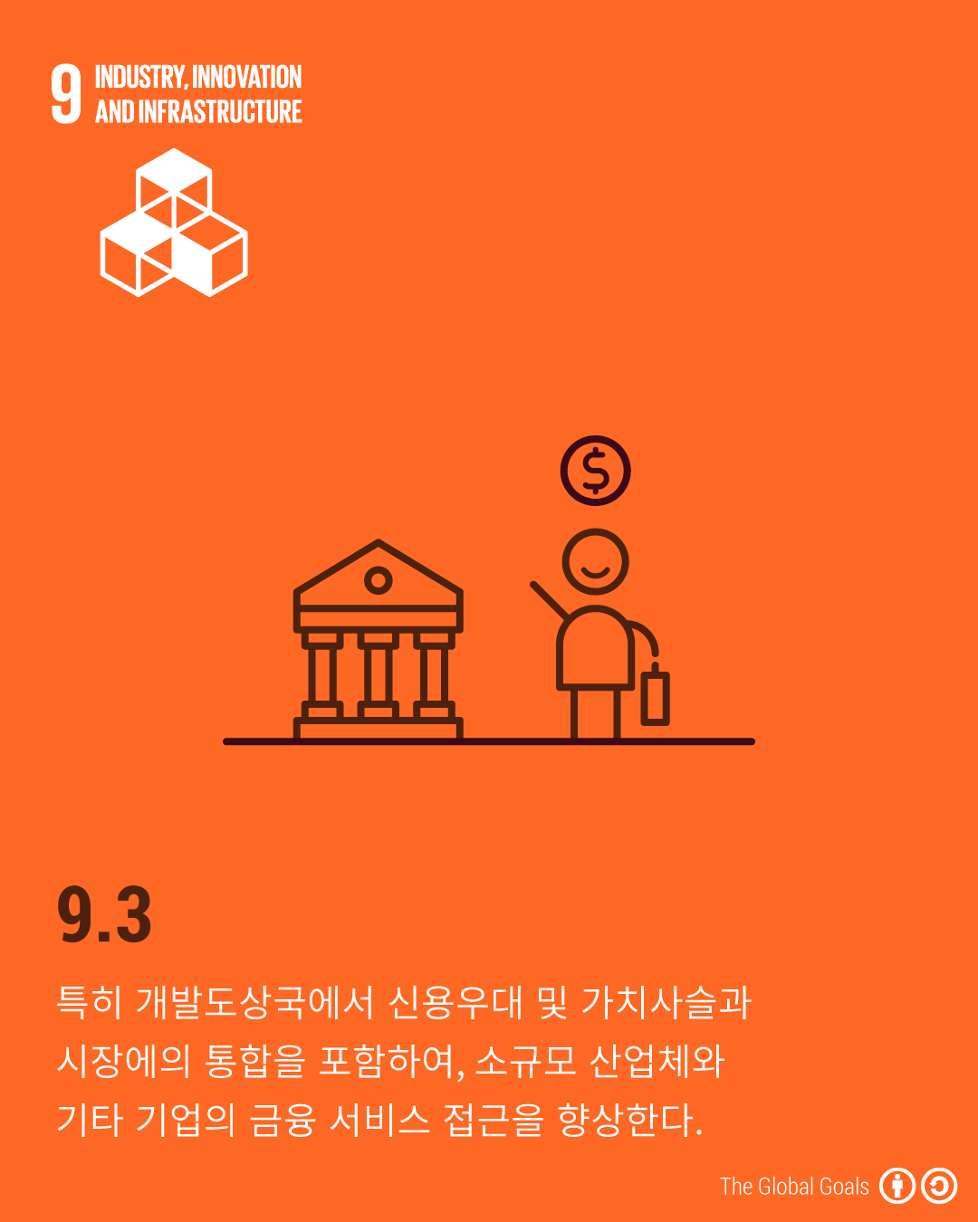 - 9.3 - 특히 개발도상국에서 신용우대 및 가치사슬과 시장에의 통합을 포함하여, 소규모 산업체와 기타 기업의 금융 서비스 접근을 향상한다.